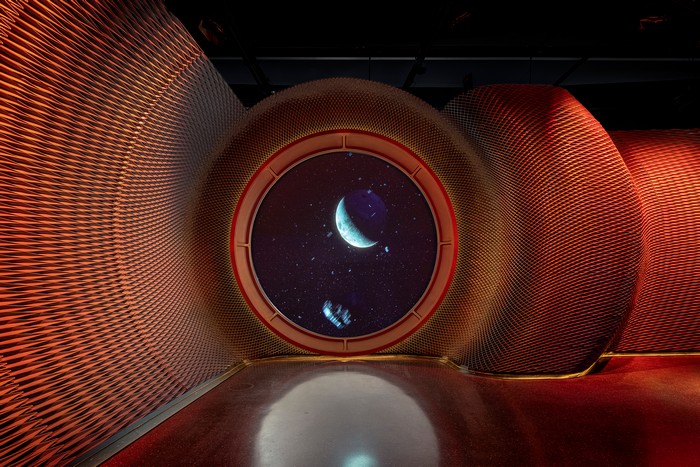 Inside the museum, visitors are drawn into an inspirational, invigorating experience told through three different chapters that illustrate the challenges of the future. The Journey of the Pioneers exhibition launches museum visitors into the year 2071 in a high-speed space capsule, transporting them to the OSS Hope space station. This is where pioneers are recruited to embark on a fictitious, yet very realistically portrayed, mission in space: the aim is to use the sun's energy to power mankind by harvesting it from the moon and transmitting it down to Earth.