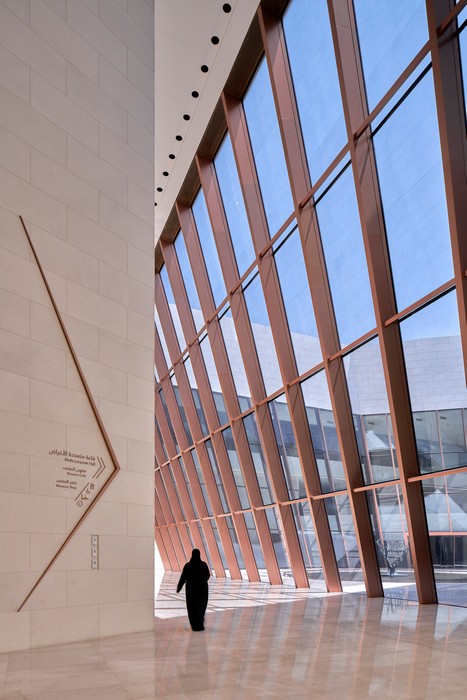 What captivated the Prix Versailles 2024 World Jury was the museum’s exceptional synthesis of architecture, landscape, and narrative. The building is deeply rooted in the natural essence of Oman, reflecting the earthen qualities and rugged beauty of the surrounding mountains. The design draws from the fractal geometry of these mountains, translating their jagged, triangulated forms into the structure of the building. This purity of geometry informs the rationalized diamond grid, which serves as the framework for the composition. The minimal colour and material palette – glass, copper, and marble – not only contribute to its aesthetic but also enhances its connection to the landscape and cultural heritage. The experience within the building is one of light: a filtered, dappled illumination that changes throughout the day. At the entrance, a giant parasol-like structure – a generous, hovering form of shelter – beckons visitors inside, inviting them into a space where elegance is the protagonist. As visitors move through the museum, they encounter a series of unfolding spatial sequences, progressing to spaces of increasing volume, refinement, and lightness. Water plays a crucial narrative role, with falaj lines extending across the earth, linking the arrival sequence to the contemplation pool at the end, echoing the essential life-giving presence of water in Omani culture. The project was praised for its marvellous design and cutting-edge technology that creates a sensory, almost cinematic experience for visitors. Every element was designed to evoke emotion, curiosity, and reflection. The jury also noted the project’s ability to use contemporary design while remaining rooted in Omani cultural expressions and environmental contexts, a rare and delicate balance achieved with mastery.